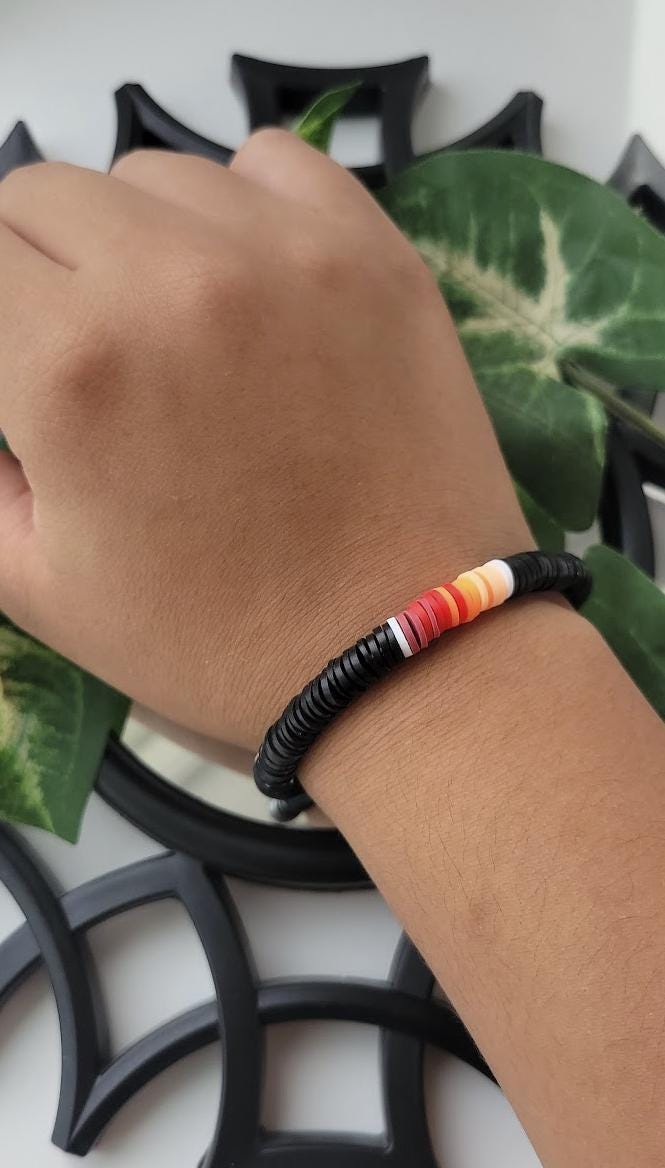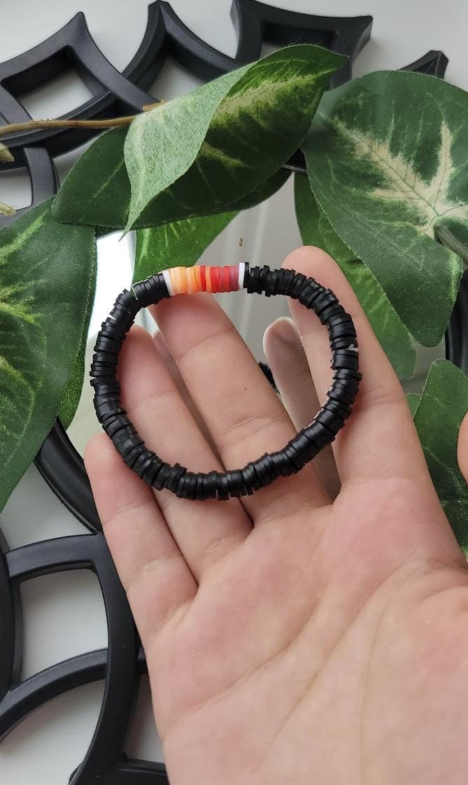 Embrace the perfect mix of bold and beautiful with our handmade Midnight Sunset Bracelet. This piece is all about contrast, featuring sleek black beads that are beautifully interrupted by a fiery pop of white and sunset colors. Perfectly sized at 6.75 inches, it’s the ultimate statement piece, designed to add an edgy yet warm touch to your fall style and make you stand out from the crowd.