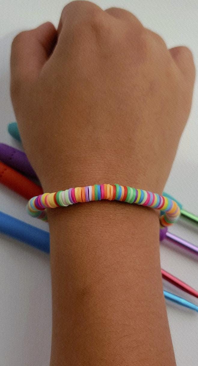 Get ready to wear the entire rainbow with our handmade Rainbow Burst Bracelet! This vibrant piece is a total mood-booster, with a fun and colorful mix of every shade. It's the ultimate accessory to add a pop of happy color and a whole lot of joy to any outfit. Perfectly sized at 6.75 inches, it’s a wearable reminder to stay bright and shine in your own unique way.